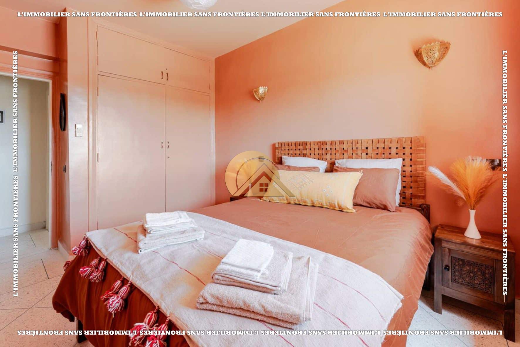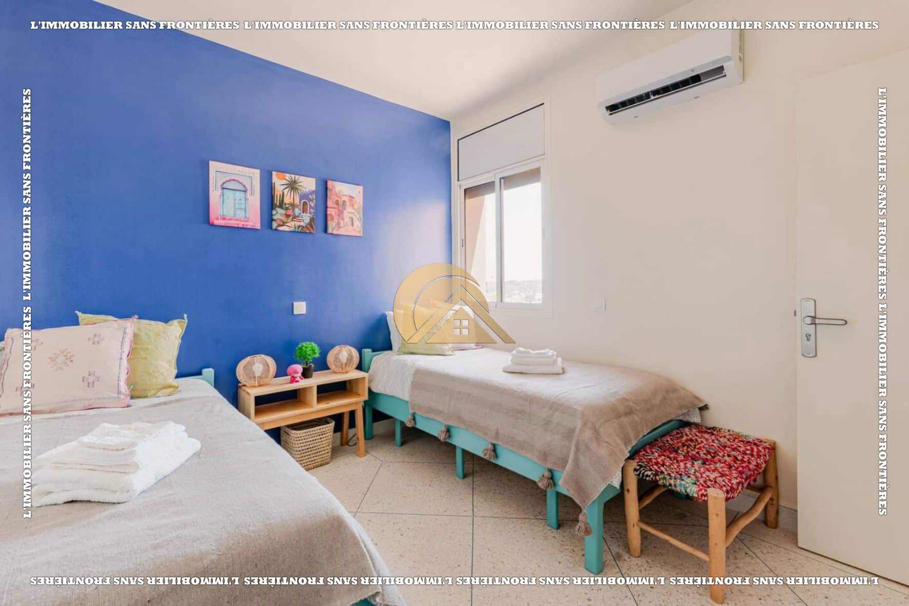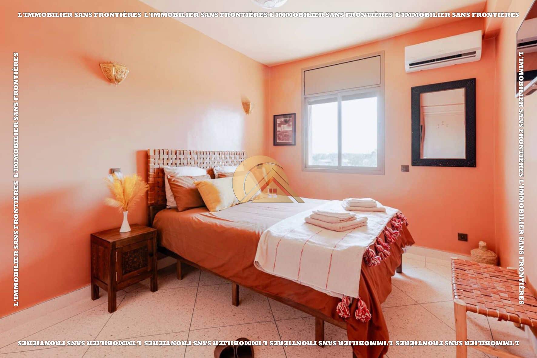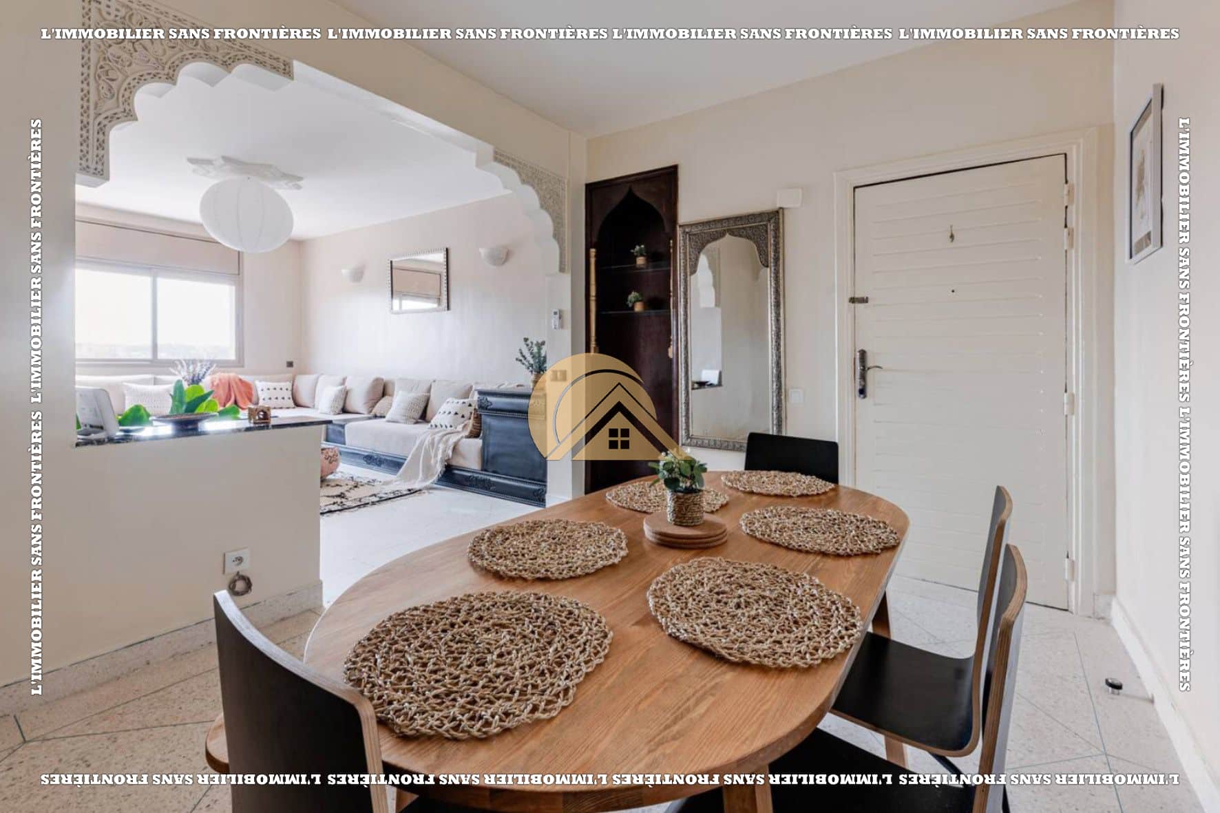 Salon marocain – Séjour – Cuisine équipée – Terrasse – 3 chambres avec placards et climatisation – 2 salles de bain – Terrasse