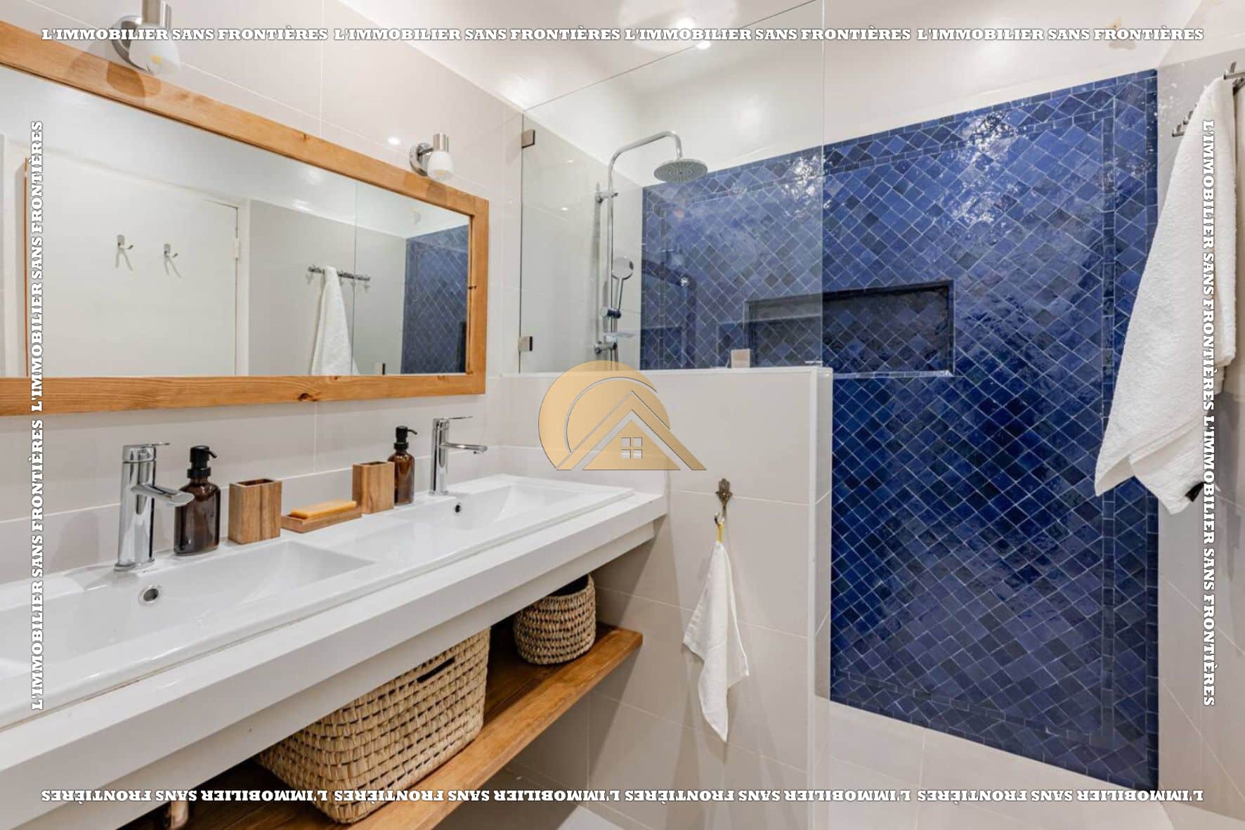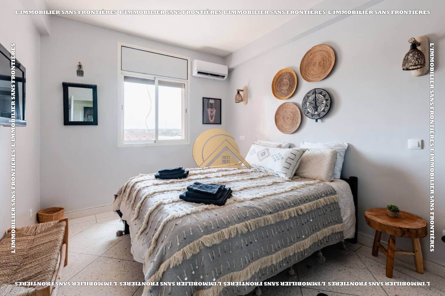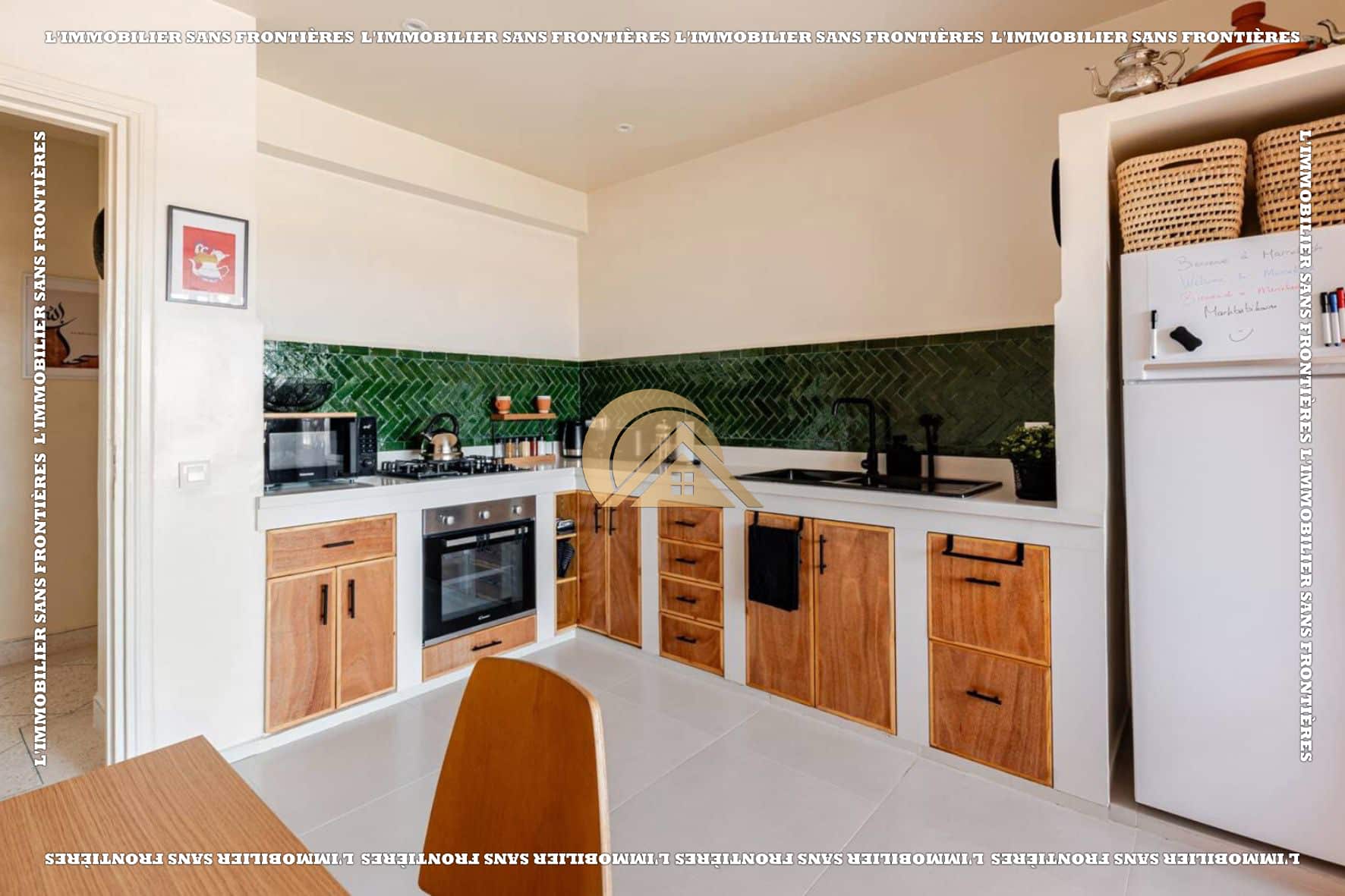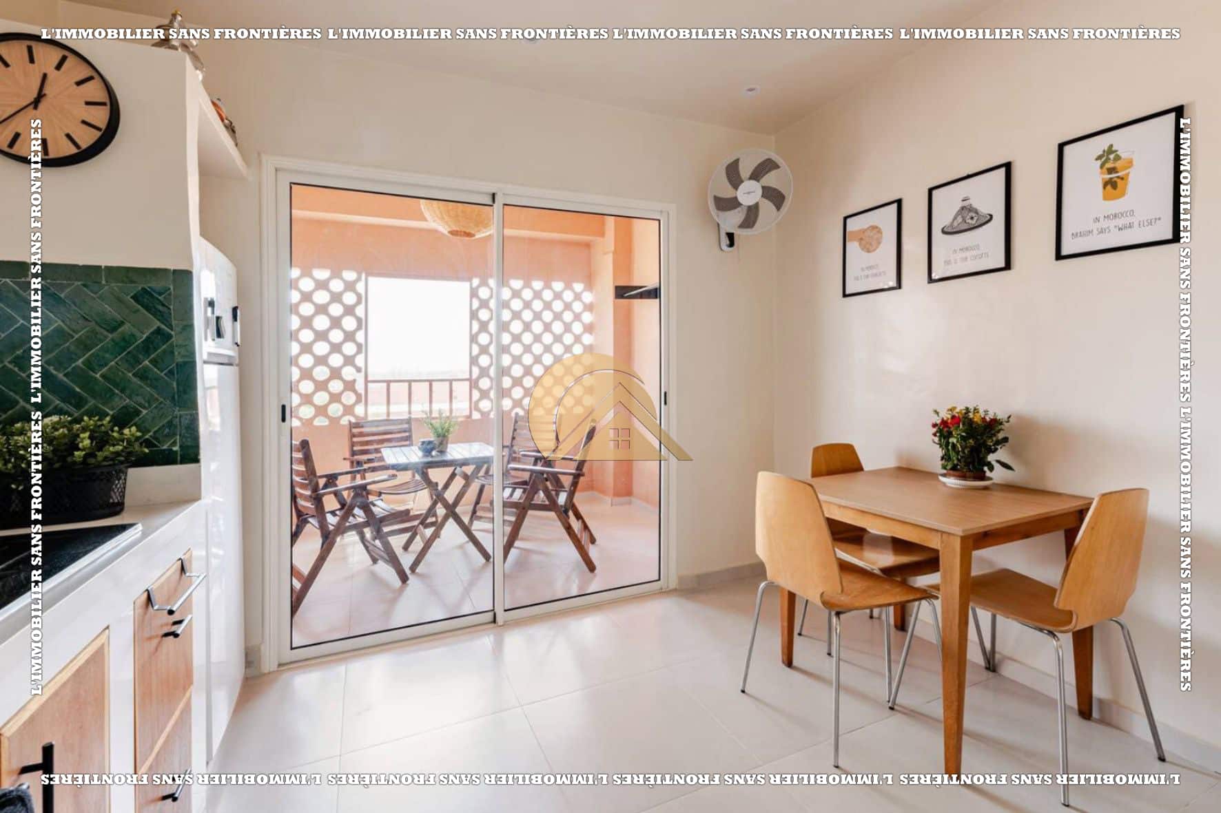 Salon marocain – Séjour – Cuisine équipée – Terrasse – 3 chambres avec placards et climatisation – 2 salles de bain – Terrasse