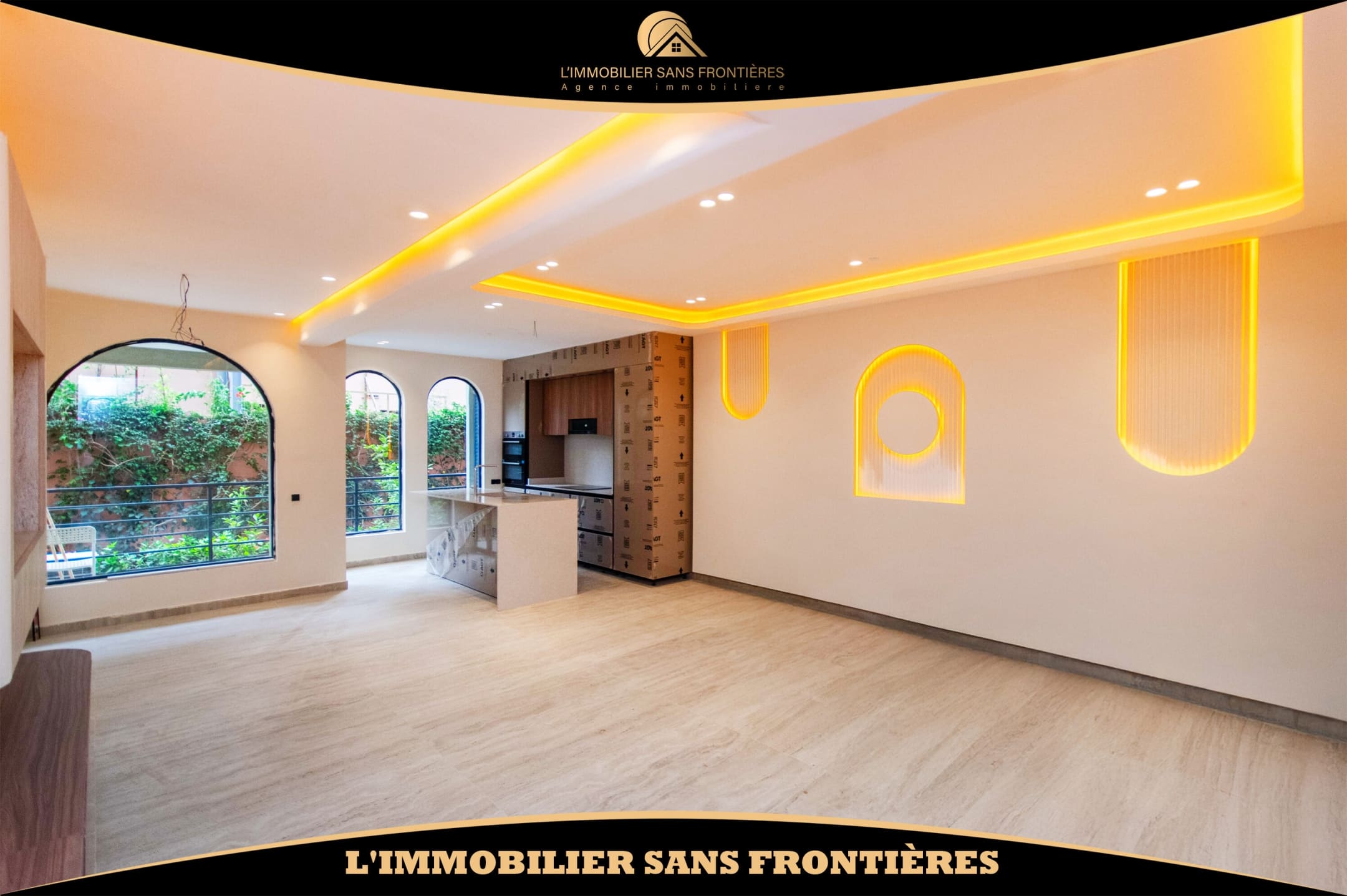 L’IMMOBILIER SANS FRONTIERES vous propose en location cet magnifique appartement vide de 100 m², situé en rez-de-chaussée d’une résidence calme, sécurisée et bien entretenue à Targa. Vous bénéficiez d’un cadre de vie agréable avec piscine collective, jardin paysagé, marbre au sol, et parking en sous-sol.
