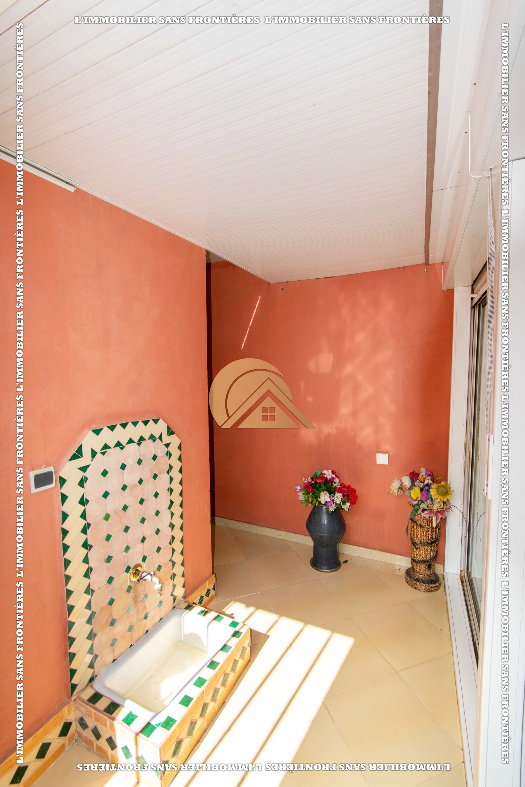 2 salons marocains – Séjour – Suite parentale avec placard, salle de bain et climatisation – 2 chambres avec placards et climatisation – Salle de bain extérieure – Cuisine équipée – Buanderie – Cour – Terrasse