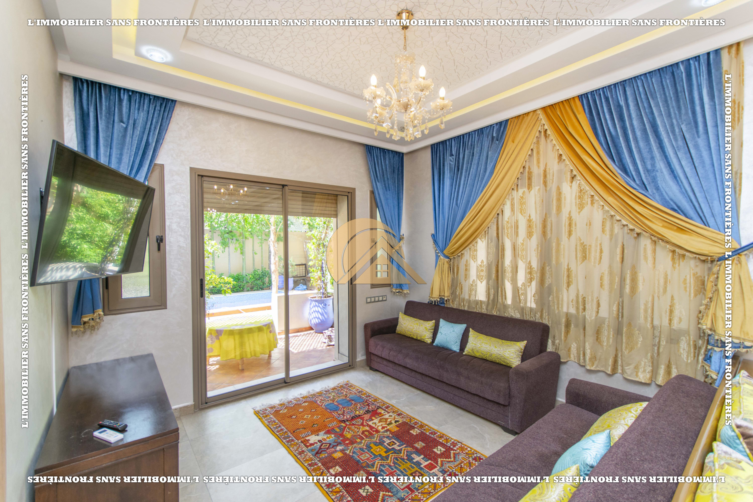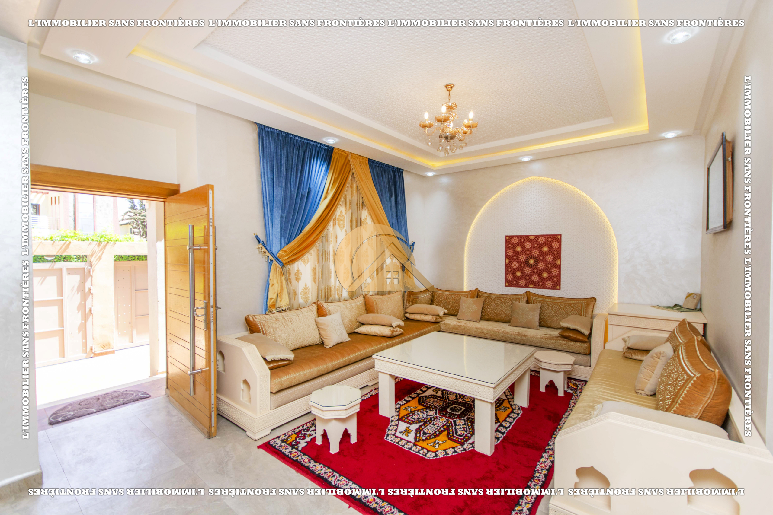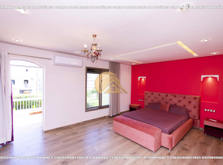 L’Immobilier Sans Frontières vous propose cette villa meublée située dans la résidence Les Portes de Marrakech, offrant confort, sécurité et proximité immédiate avec toutes les commodités essentielles.